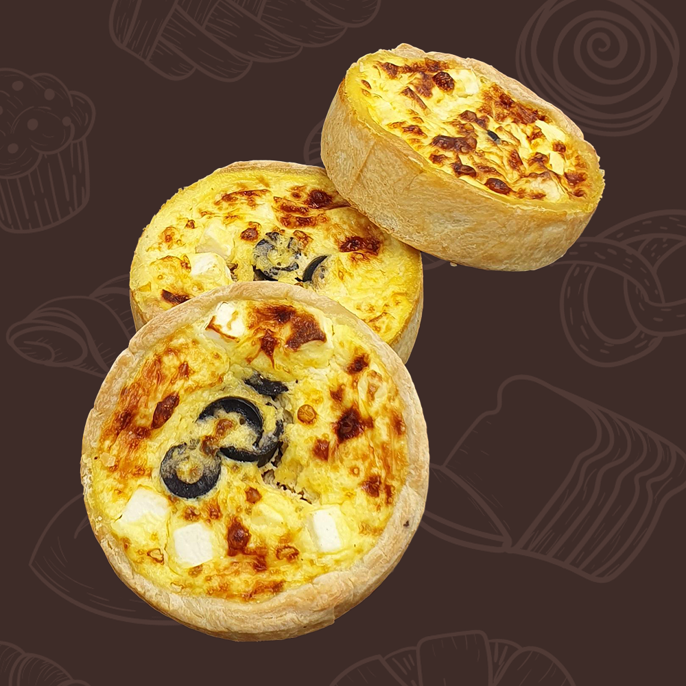 Aurinkokuivattutomaatti-feta-oliivi quiche