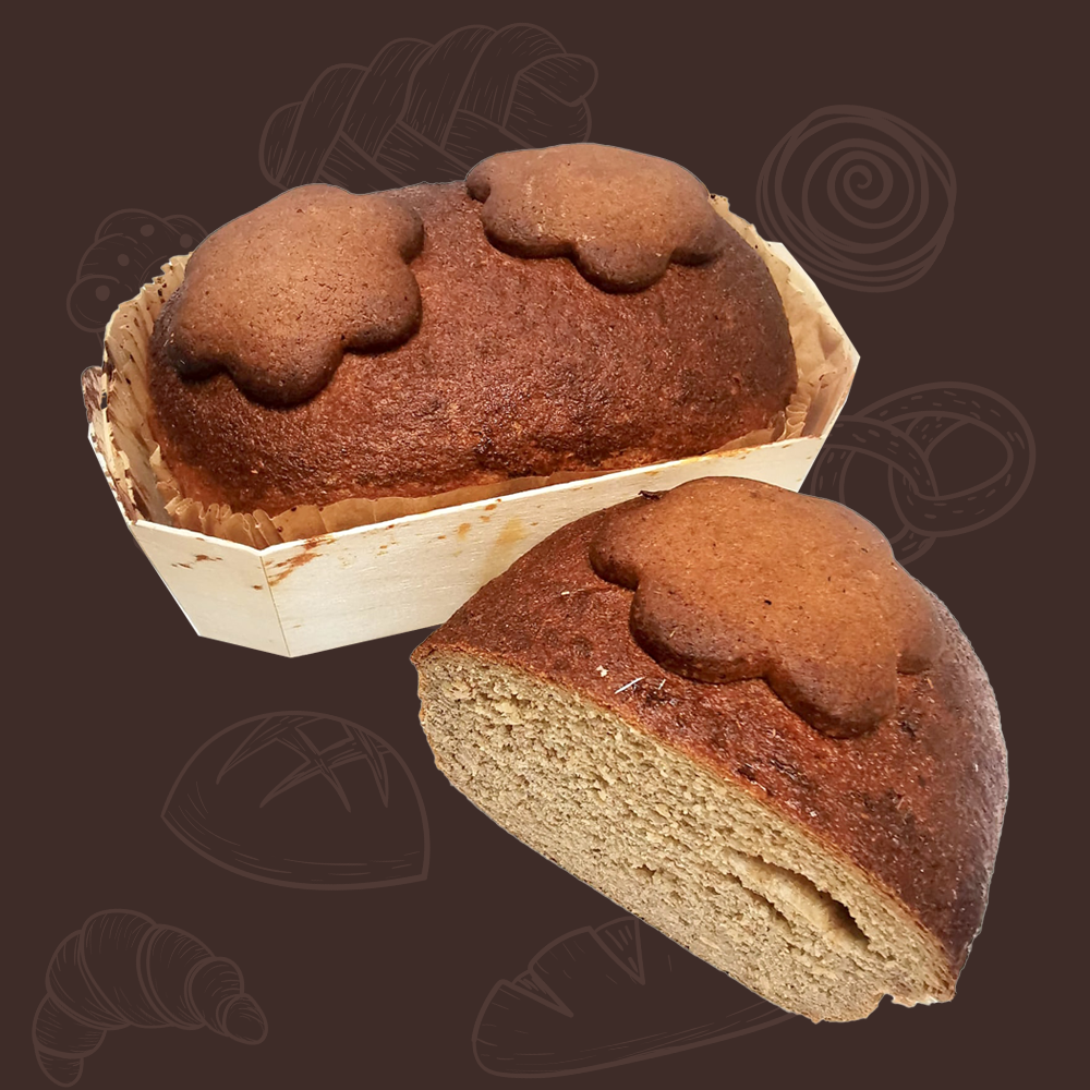 A spicy Christmas loaf decorated with Christmas gingerbread.
